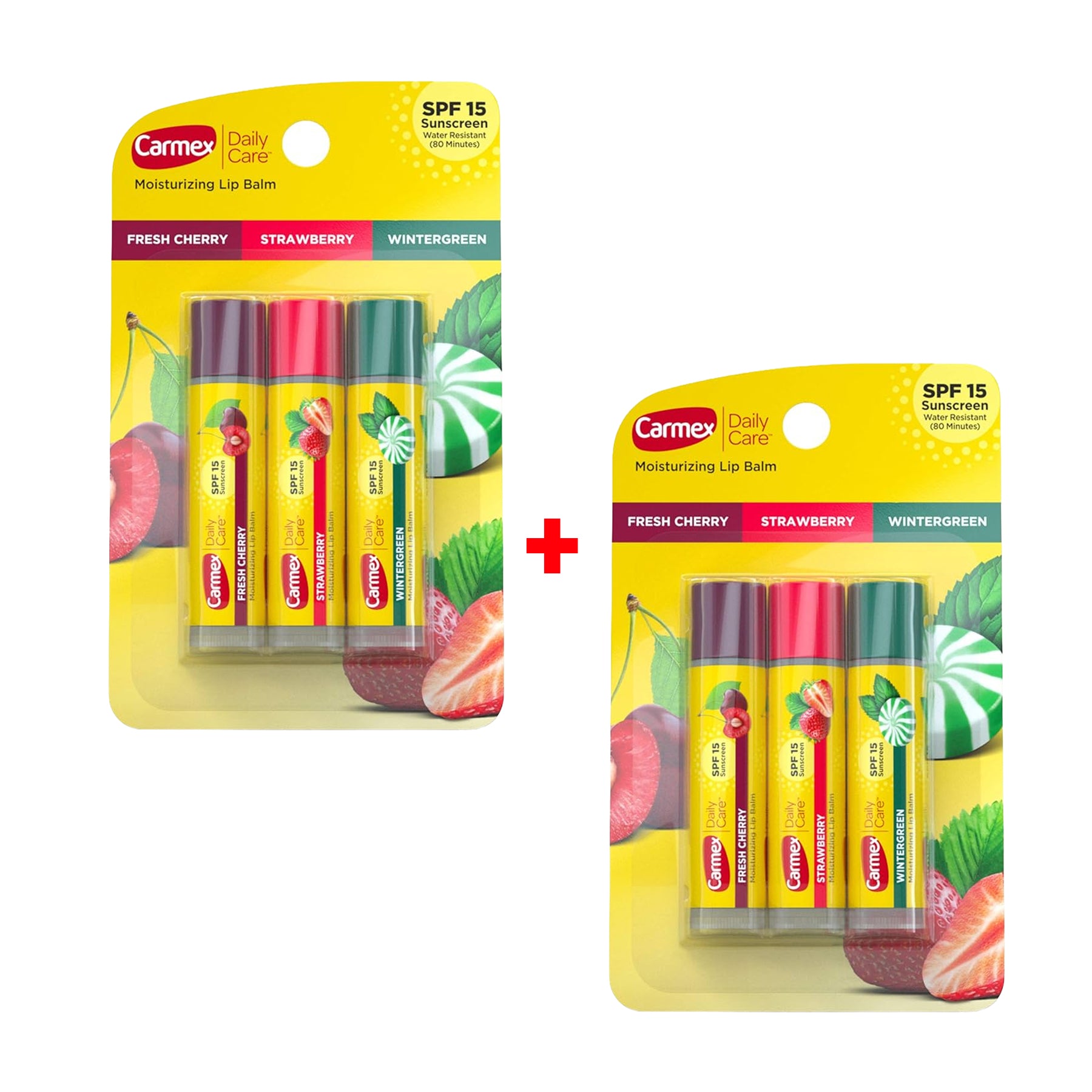 Treat your lips with the Carmex Daily Care SPF15 Variety Pack, featuring three delightful flavors: Strawberry, Wintergreen, and Cherry. Formulated to provide long-lasting moisture and essential SPF15 sun protection, this lip balm trio offers a burst of fruity goodness while keeping your lips soft and shielded from harmful UV rays.