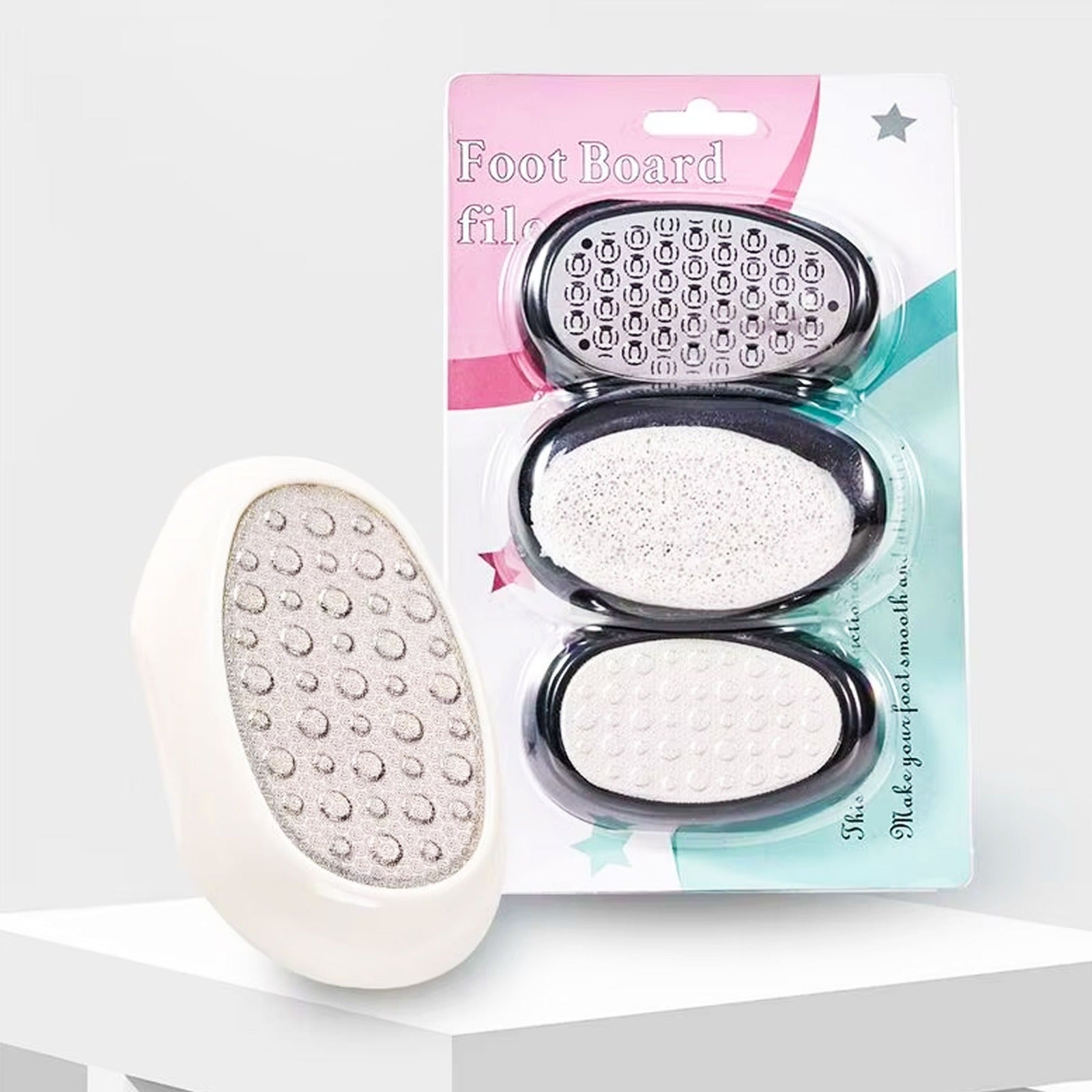 Foot Board File Tool is a handheld pedicure tool designed to gently remove dead skin, calluses, and rough patches, leaving feet smooth, soft, and refreshed.