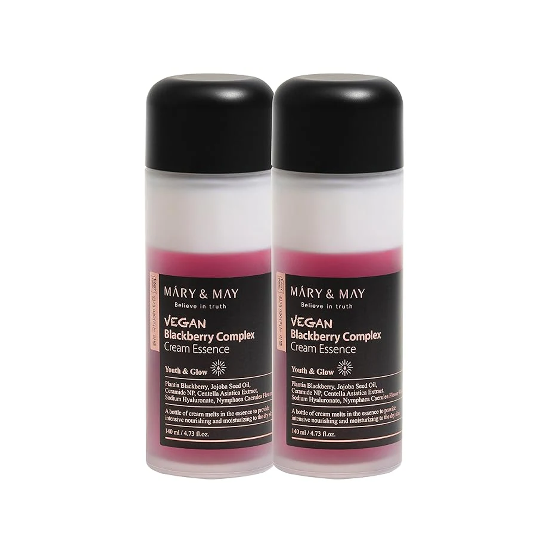 Mary & May Vegan Blackberry Complex Cream Essence Duo Set is a gentle cream essence duo that helps keep skin calm, soft, and well hydrated while supporting a youthful look.