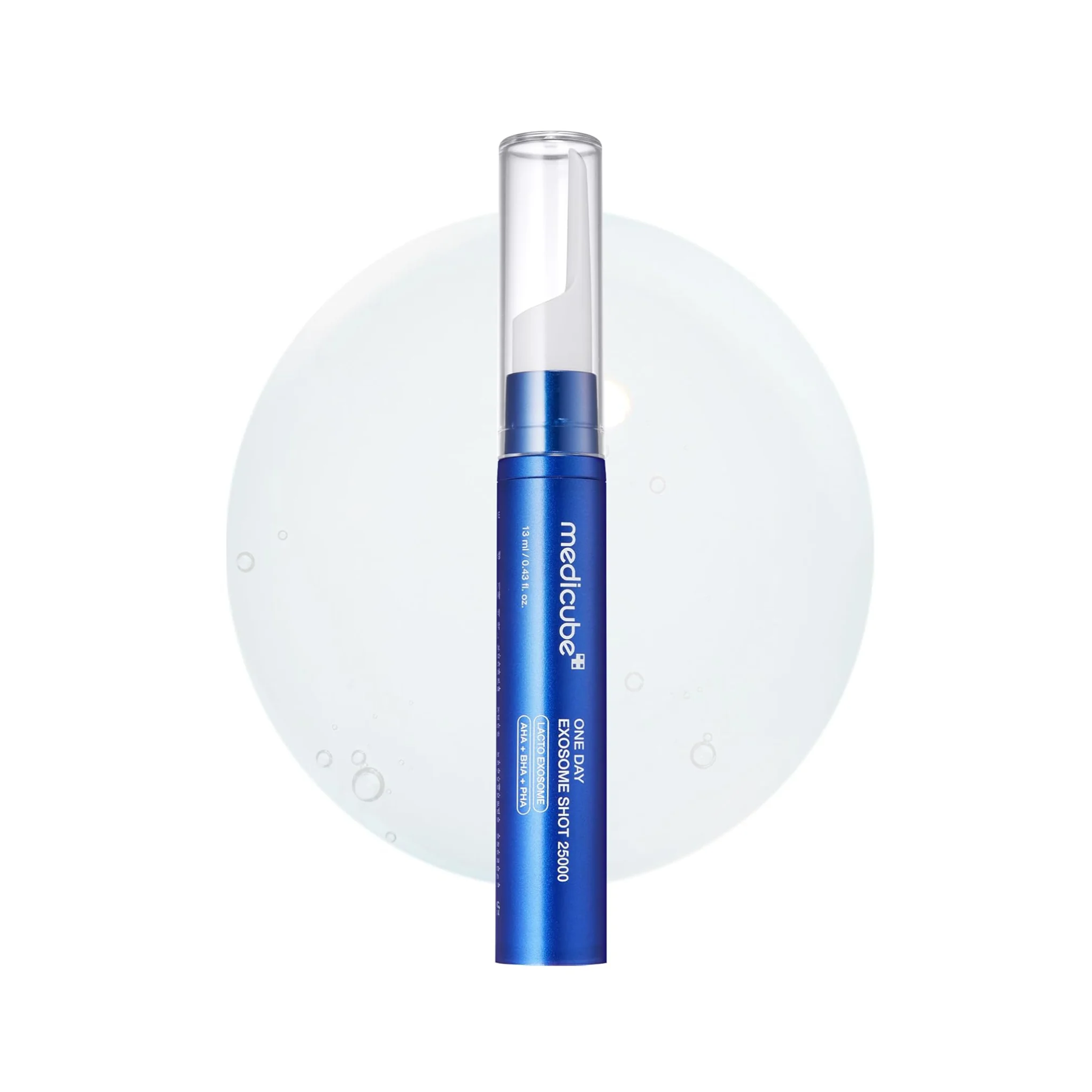 Medicube One Day Exosome Shot 25000 is a powerful pore care serum that helps brighten, smooth, and calm the skin. Made with niacinamide, peptides, and panthenol, it improves skin tone and reduces the look of large pores. The light ampoule texture absorbs quickly and delivers 25000ppm exosomes deep into the skin for strong and visible results.