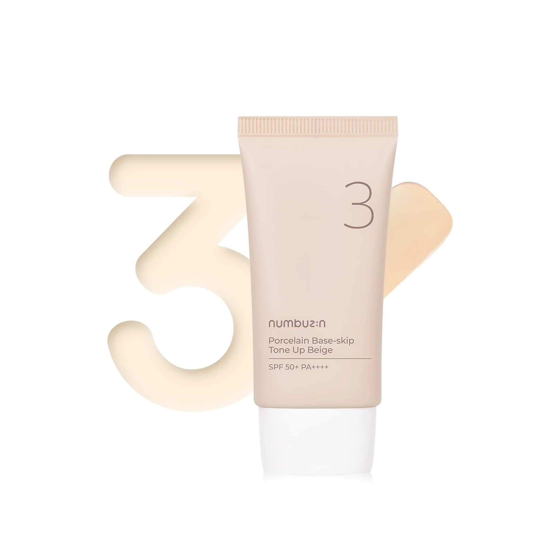 Numbuzin No.3 Porcelain Base-Skip Tone Up Beige is a daily tone-up cream that helps smooth pores and even out skin tone with a soft beige shade. It gives a natural glow that stays fresh all day while also protecting your skin from sun damage.