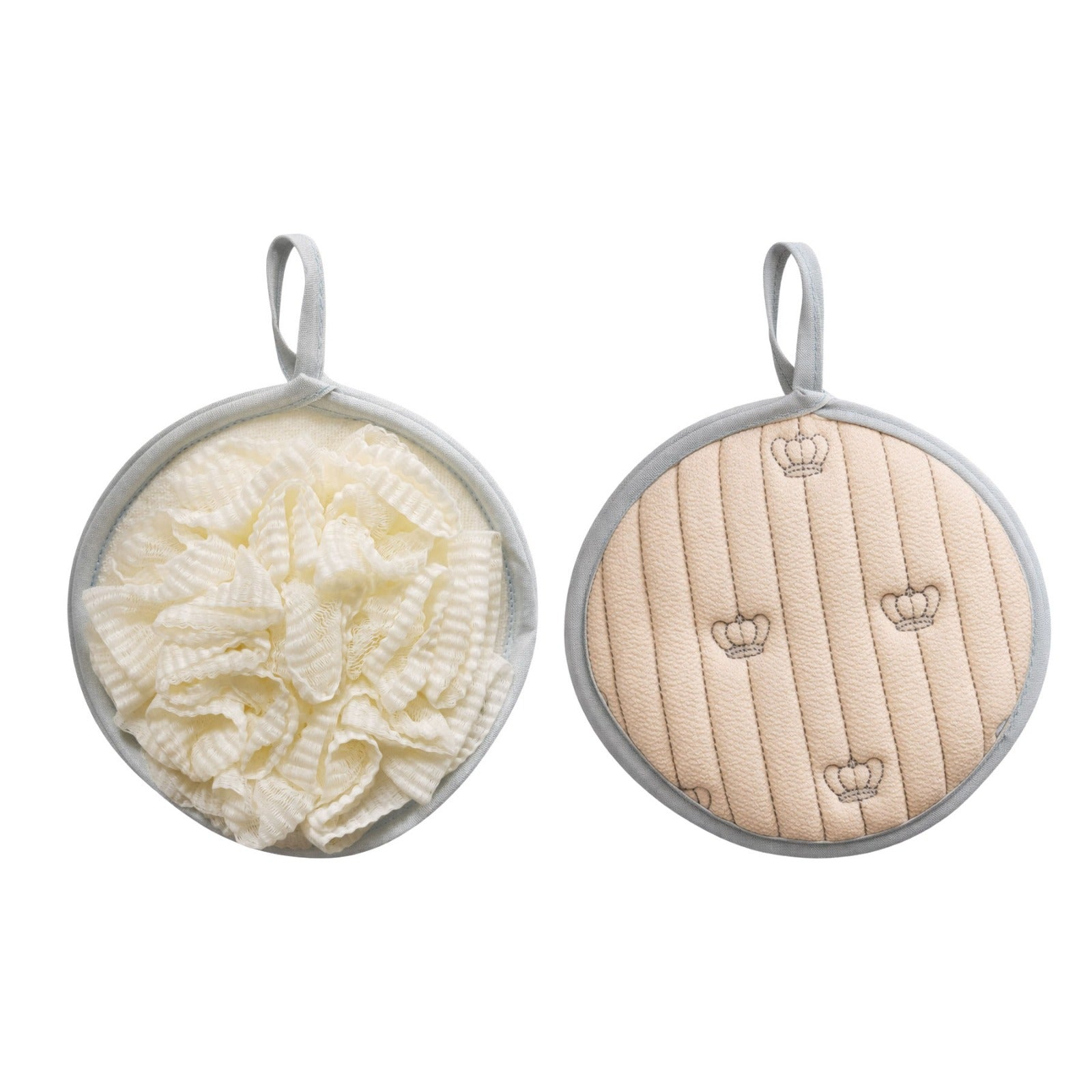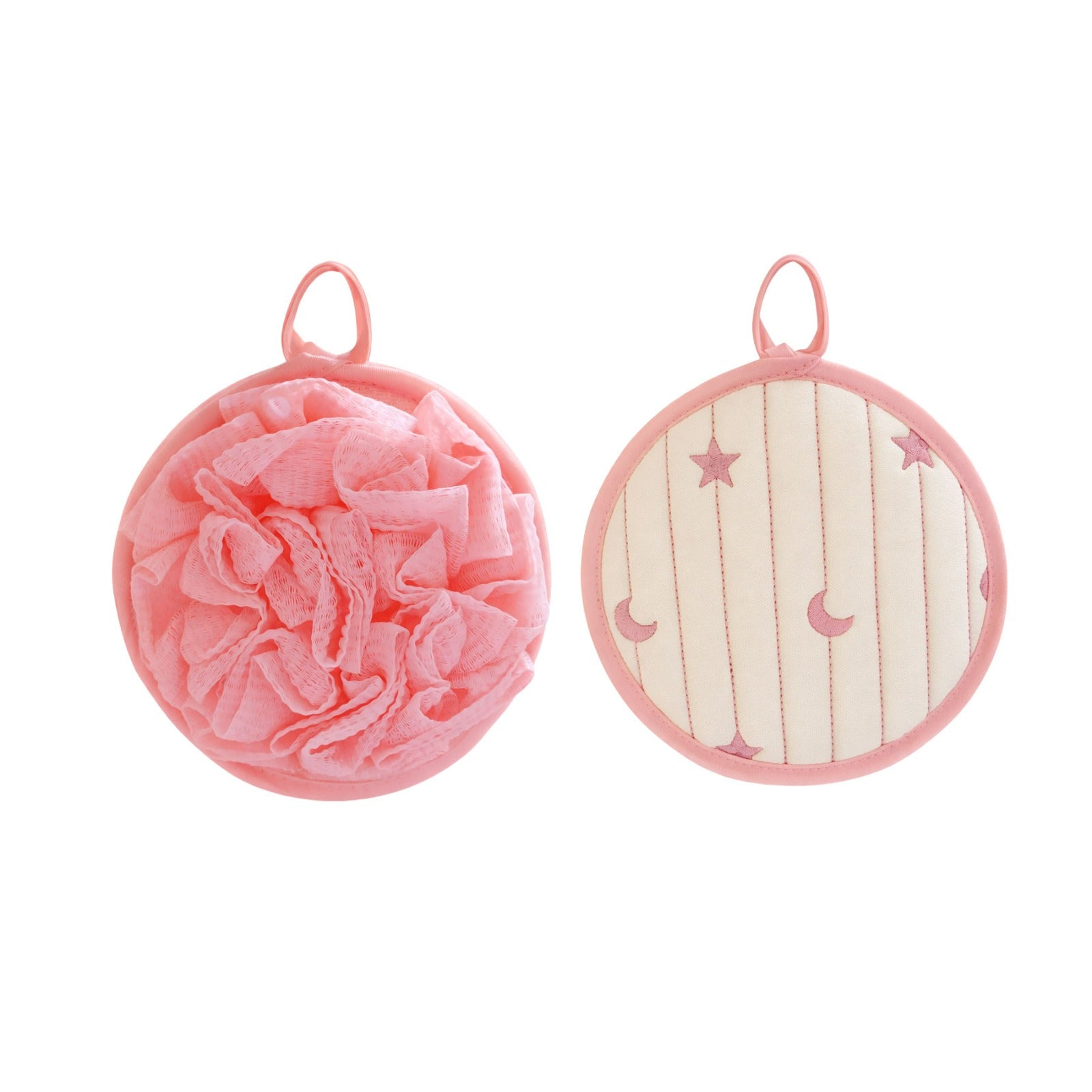 Embroidered Bath Cake Loofah is a soft body cleansing tool designed to remove dirt, oil, and dead skin during bathing. It helps clean pores gently while giving a fresh and smooth skin feel after every wash.