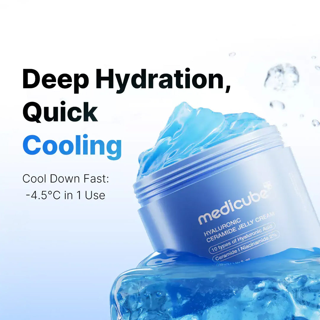 Medicube Hyaluronic Ceramide Jelly Cream is a bouncy gel cream that gives deep moisture and keeps your skin soft and strong. It helps brighten dull skin and supports the natural barrier so your face feels fresh, smooth, and protected every day.