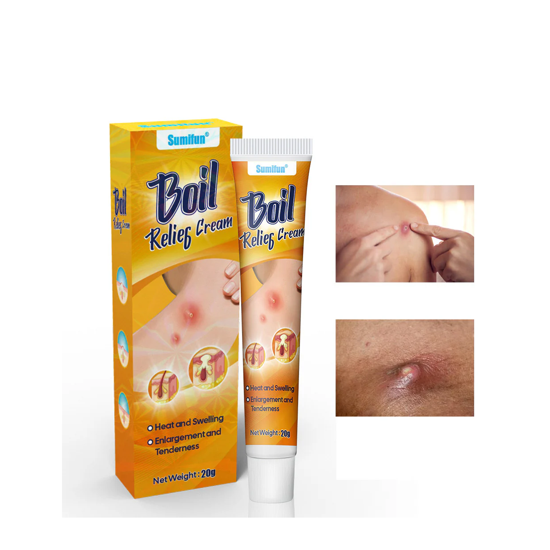 Sumifun Boil Relief Cream is a fast acting cream made to ease pain, redness, and swelling caused by boils. It helps calm irritated skin and supports natural healing on areas like face, neck, underarms, and other sensitive spots.
