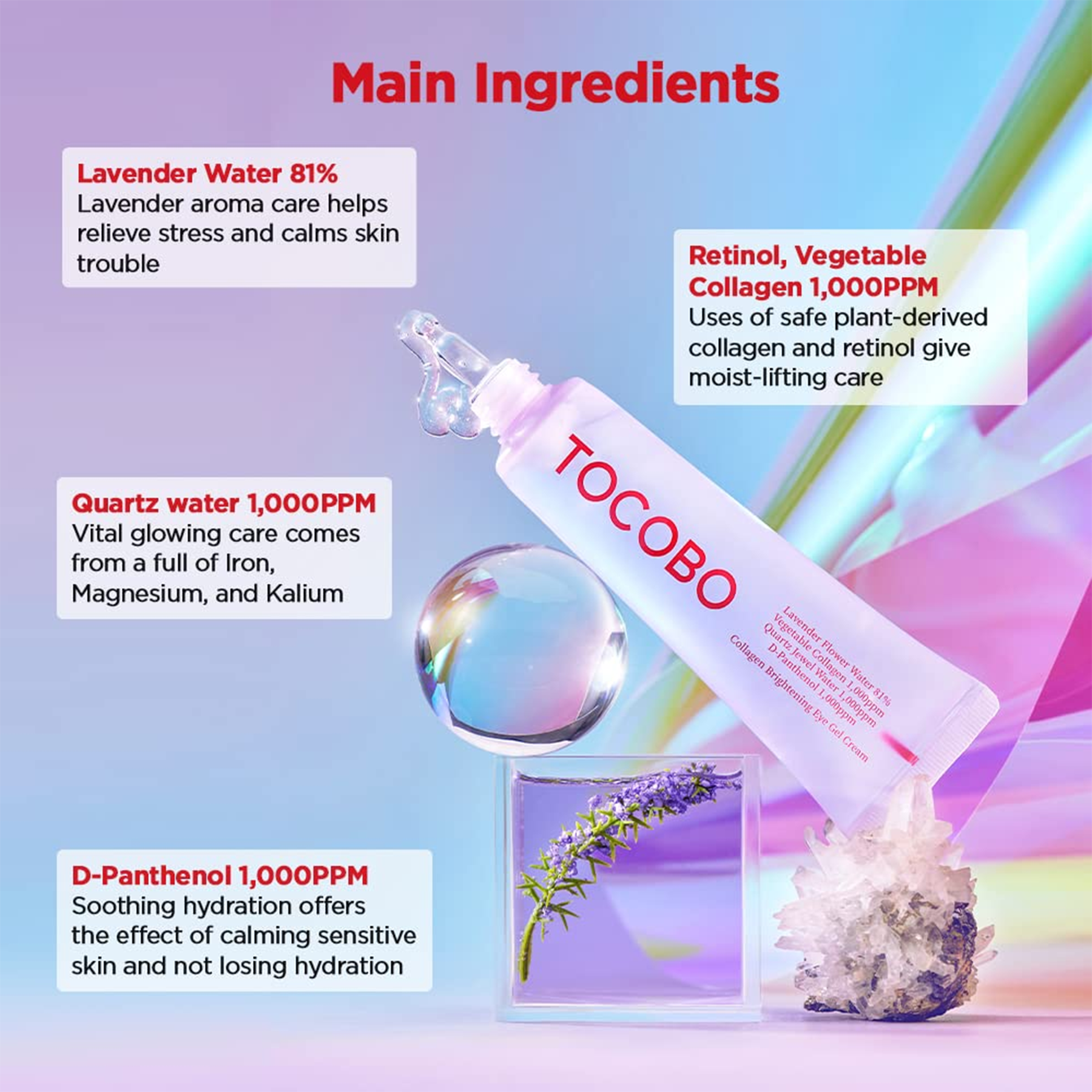 · Reduces dark circles and puffiness: The lavender flower water soothes and refreshes tired eyes.
